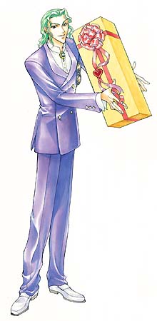 あやしい品物を売る商人。如才なく、根っからの商売人。