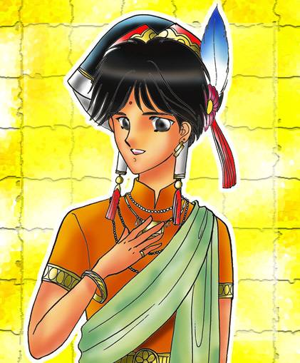 僕の民族衣装の質感が、とてもよく表されていますね。アクセサリーまで、きちんと描いていただいて嬉しいです。 |