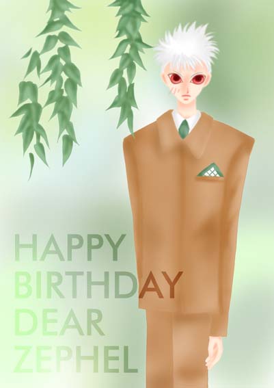 「こてつ」さんの描いてくれたイラストなんだけど、ゼフェル様、こういうきちんとしたお洋服も意外と似合っちゃうんだね。いつもはラフなお洋服が多いけど・・・。 |