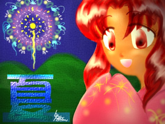 「らーは・りう」さんのイラストは、花火とメルね。かわいい!