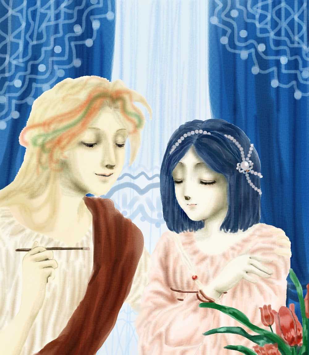 「ローズマリー」さんの絵は色使いが優しくて、宗教画みたい…。