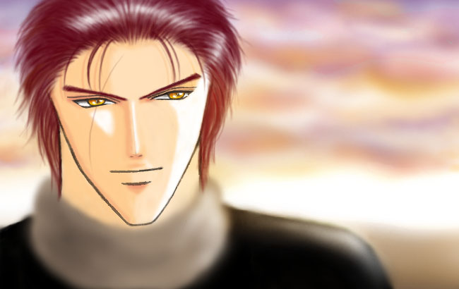 「N.W.」さんの絵は、あかね色の空の下のヴィクトールさんだね。