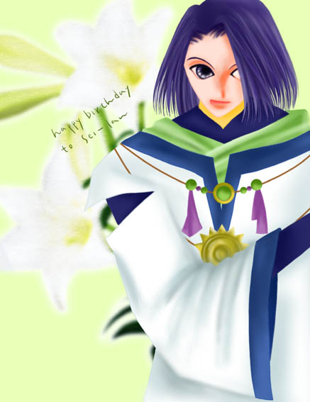 「路紗」さんの絵は、「誕生日プレゼントに埋もれるセイランさん」なんだって。