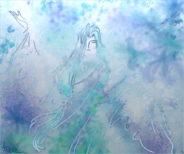 「らーは・りう」さんのイラストは、水の力を送っているところなのかな? なんだか荘厳な雰囲気が伝わってくるね。 |