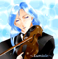 「有江みのり」さんが送ってくれたリュミエール様、かっこいいなあ。バイオリンにタキシード…いつもの穏やかな雰囲気と違って、とってもりりしいリュミエール様だね! タキシードが似合うなんて、うらやましいな。 |
