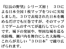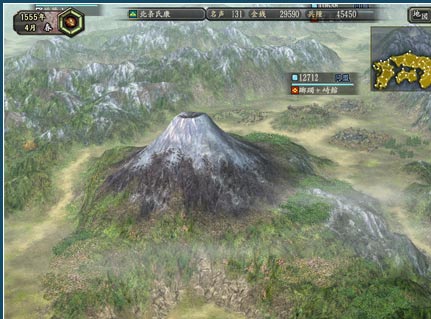 日本全国を3D1枚マップで表現することで、見た目の美しさと、戦場の臨場感が増しています。このマップ上で内政や合戦を行っていくわけですが、それぞれどのような形で表現されているかを、シチュエーションごとに紹介しましょう。
