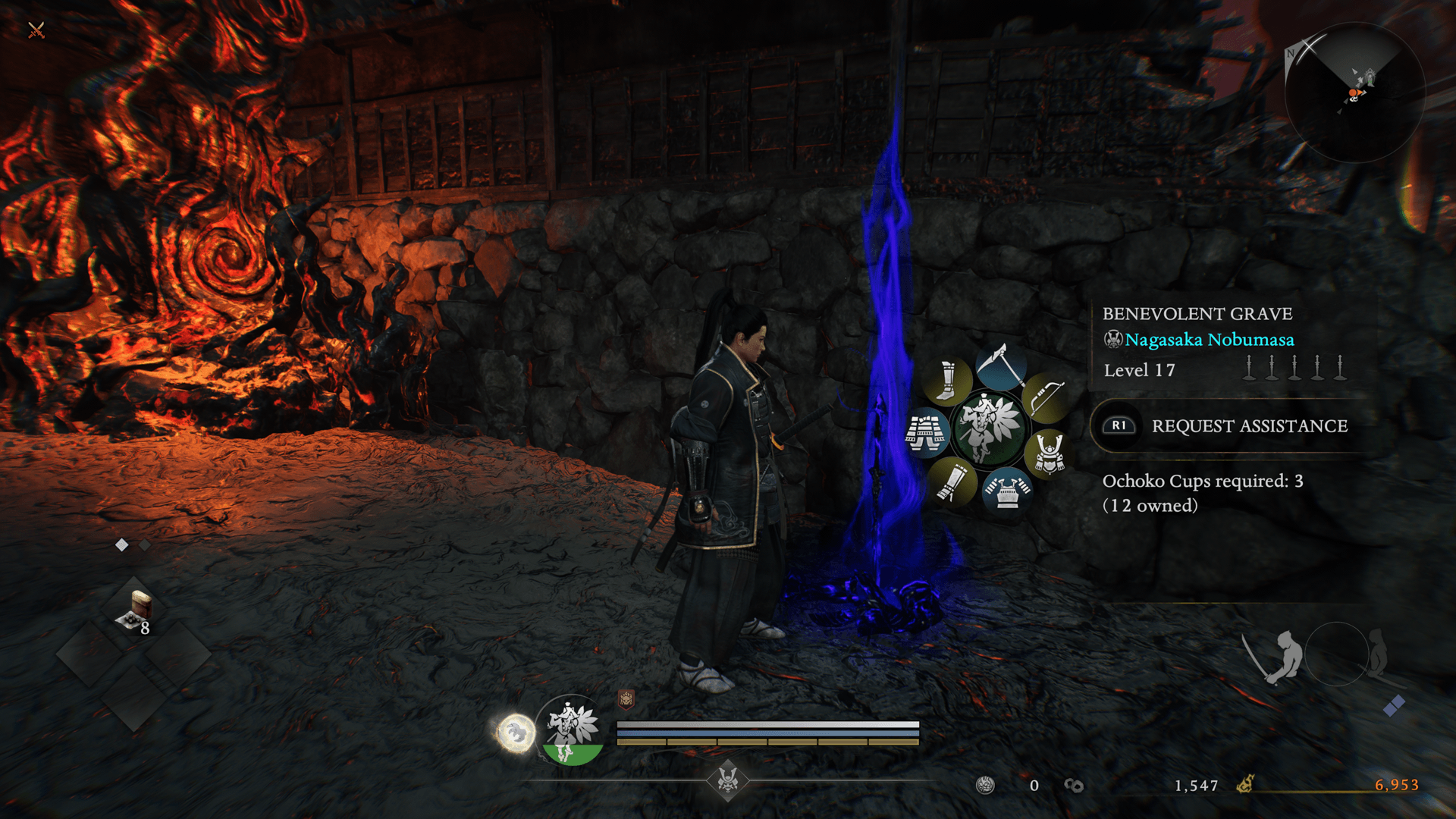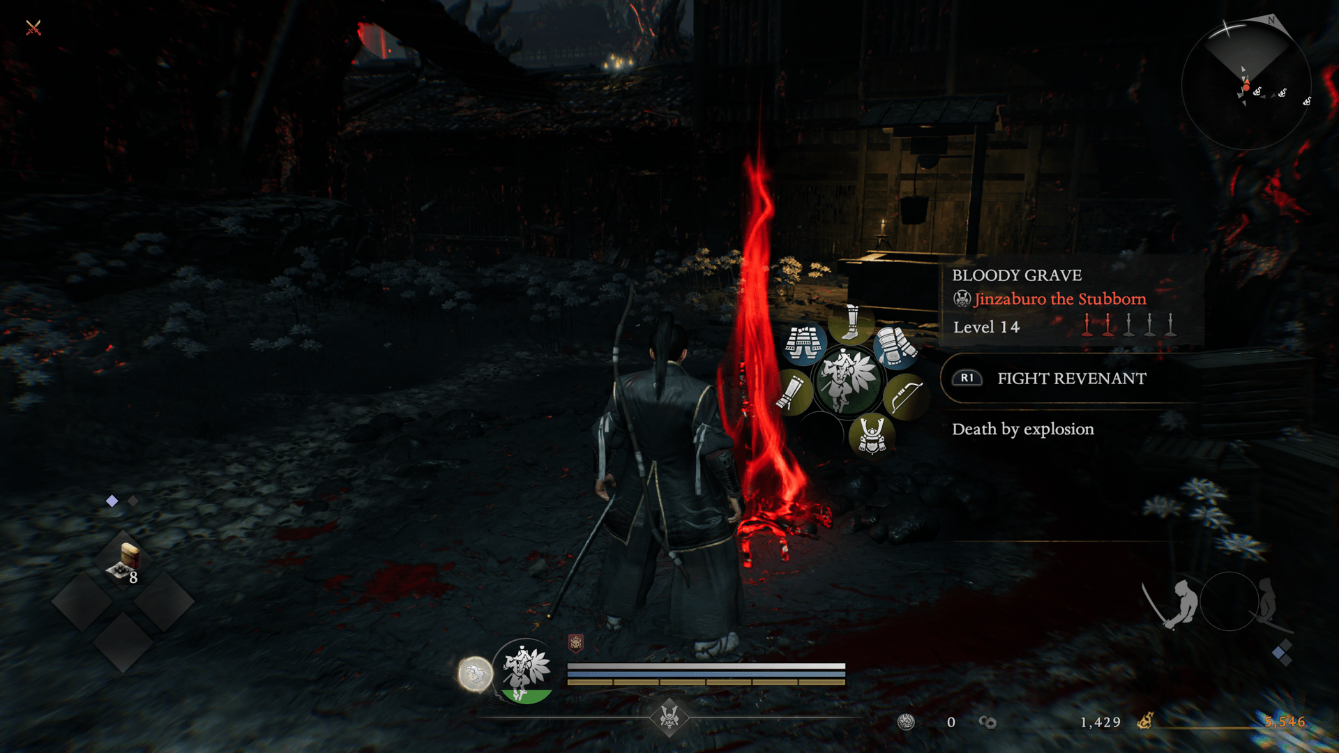 These are other players' graves, and can be used to call forth Revenants—other players who have turned into yokai—to fight against. Revenants are strong, and by defeating them you can obtain Ochoko Cups and equipment. Additionally, Bloody Graves record their owner's cause of death, which can help provide hints for your mission.