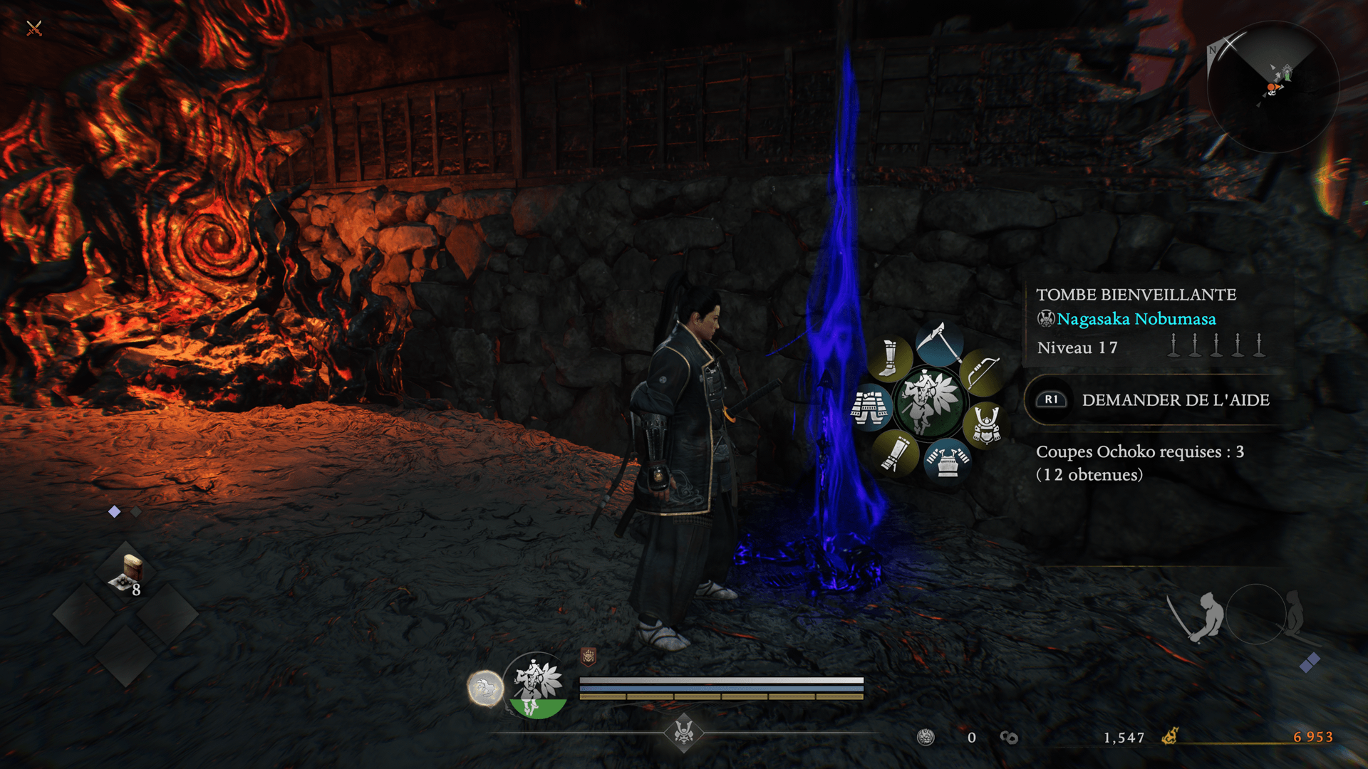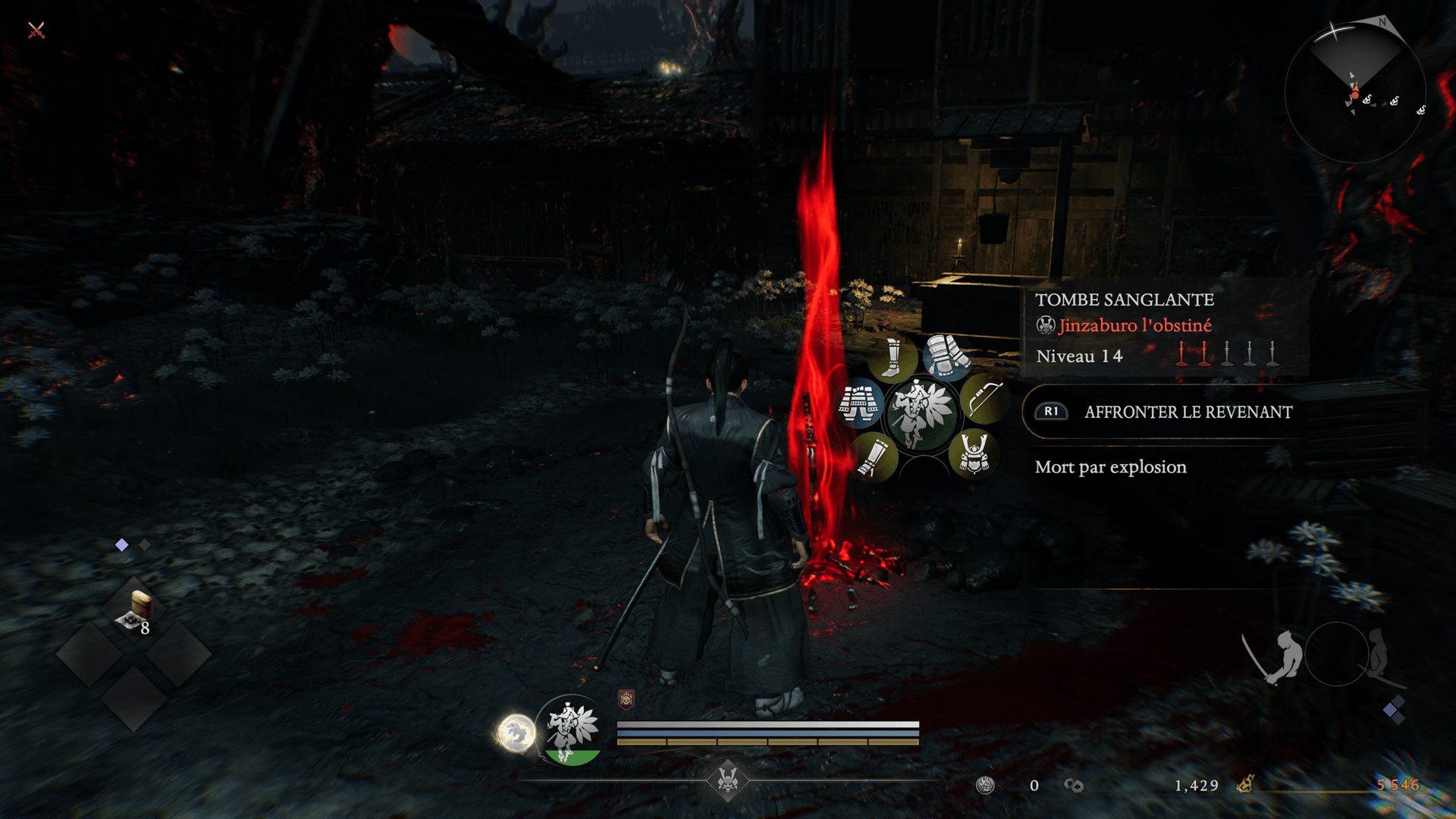 Il s'agit de tombes d'autres joueurs, pouvant être utilisées pour rappeler des Revenants (d'autres joueurs transformés en yokai) à combattre. Les Revenants sont puissants, mais en les éliminant, vous pouvez obtenir des coupes Ochoko et de l'équipement. Par ailleurs, les tombes sanglantes consignent la raison de la mort de leur propriétaire, ce qui peut vous offrir des indices pour votre mission.