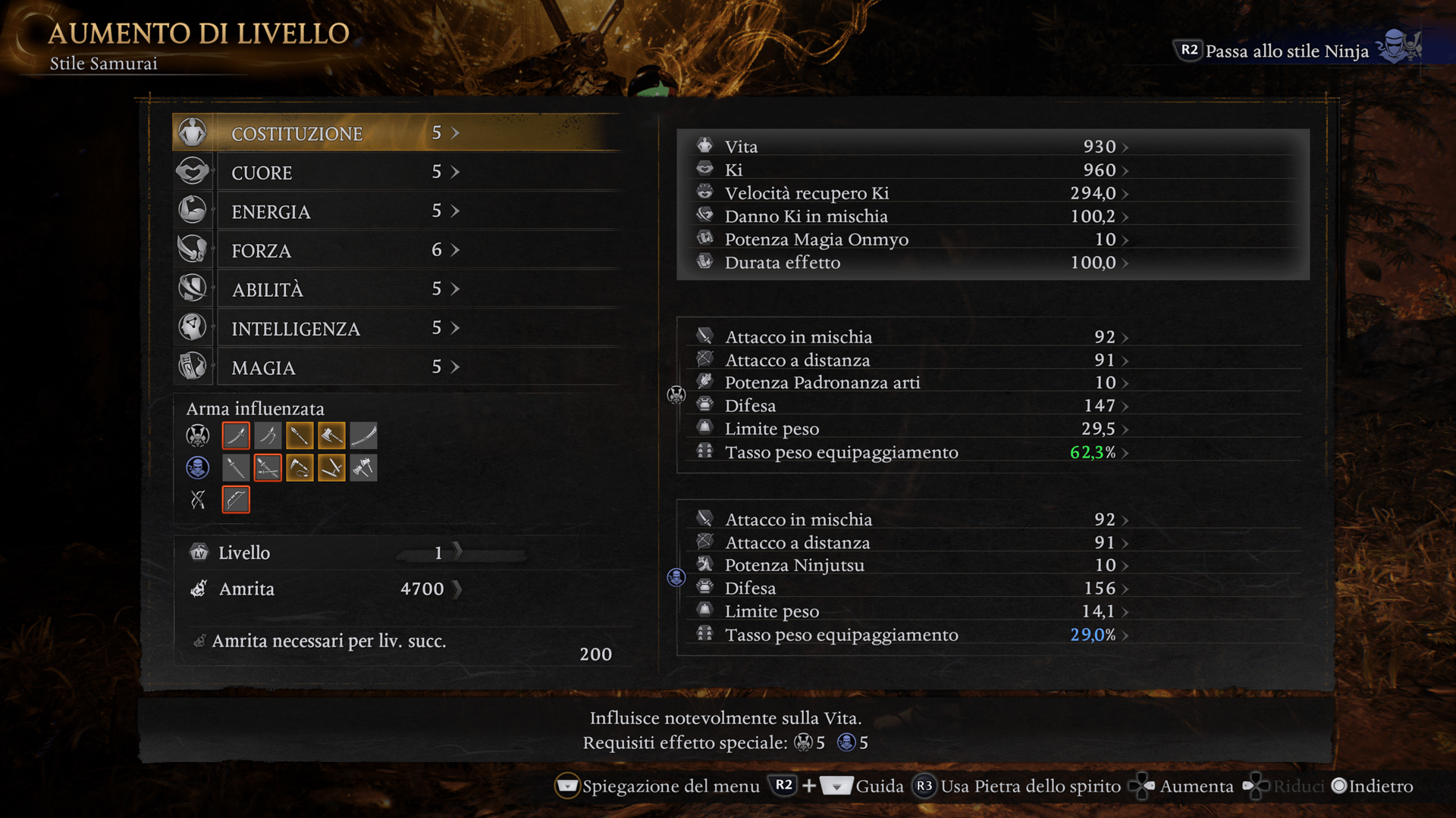 Gli Amrita possono essere spesi per aumentare il livello delle statistiche base. Oltre ad aumentare la tua Vita, permettendoti di sopravvivere più a lungo, potrai beneficiare di diversi potenziamenti in base alla statistica che scegli di migliorare.