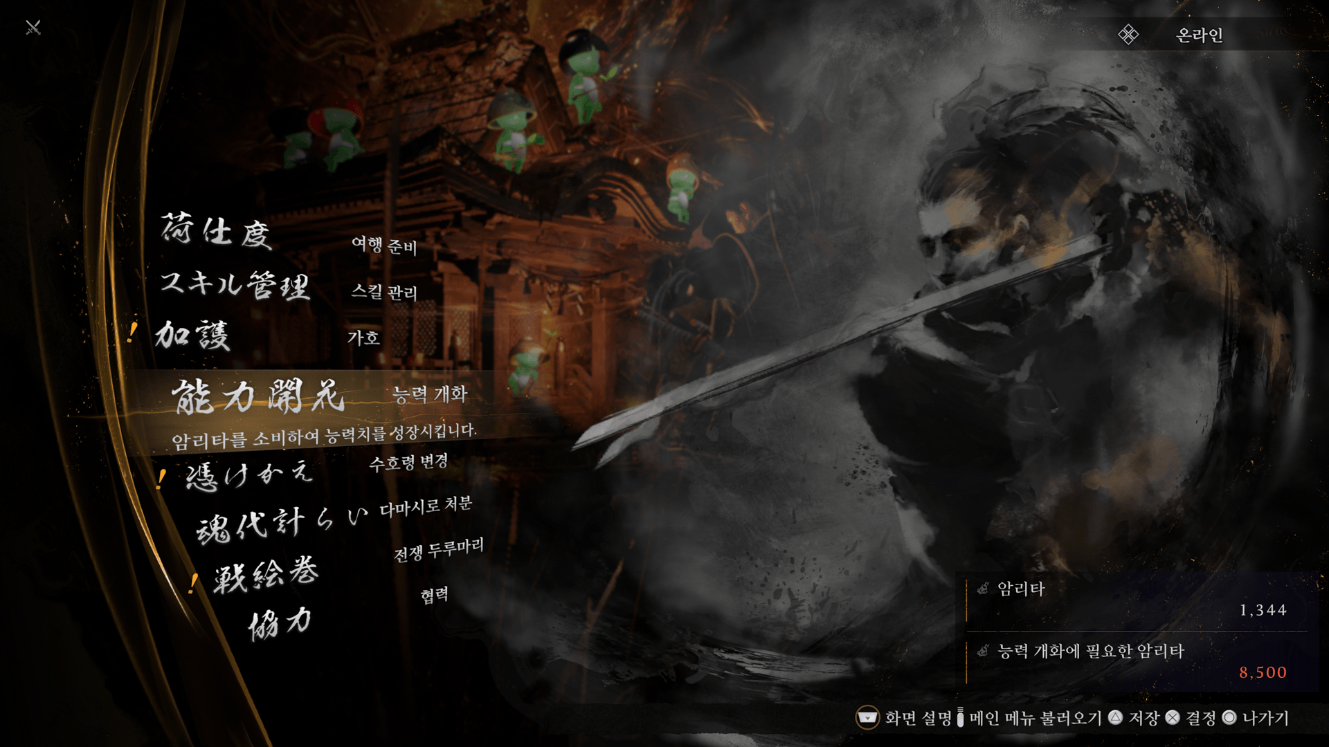 다마시로의 장착이나 강화, 수호령의 강화를 실행할 수 있습니다.