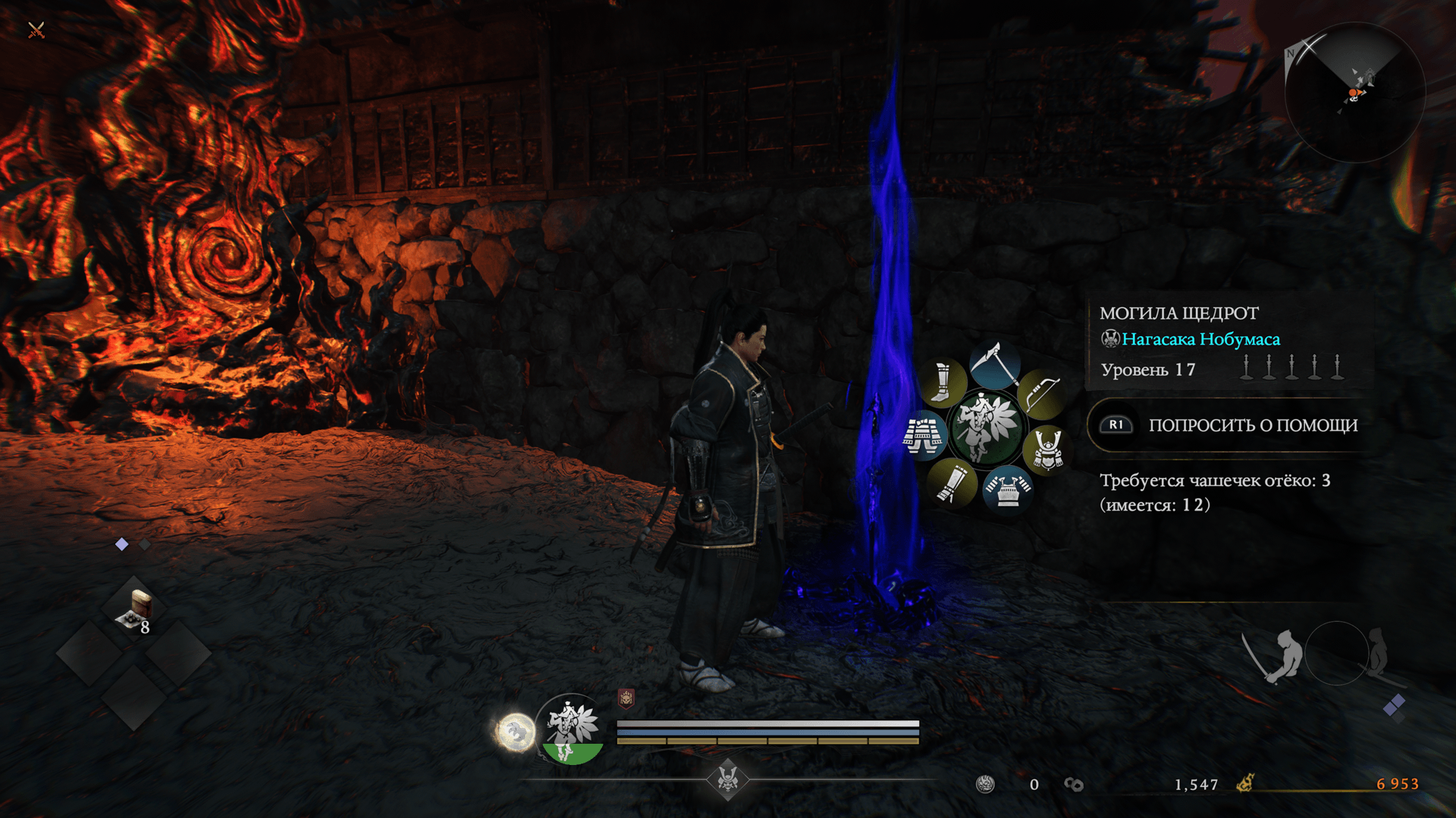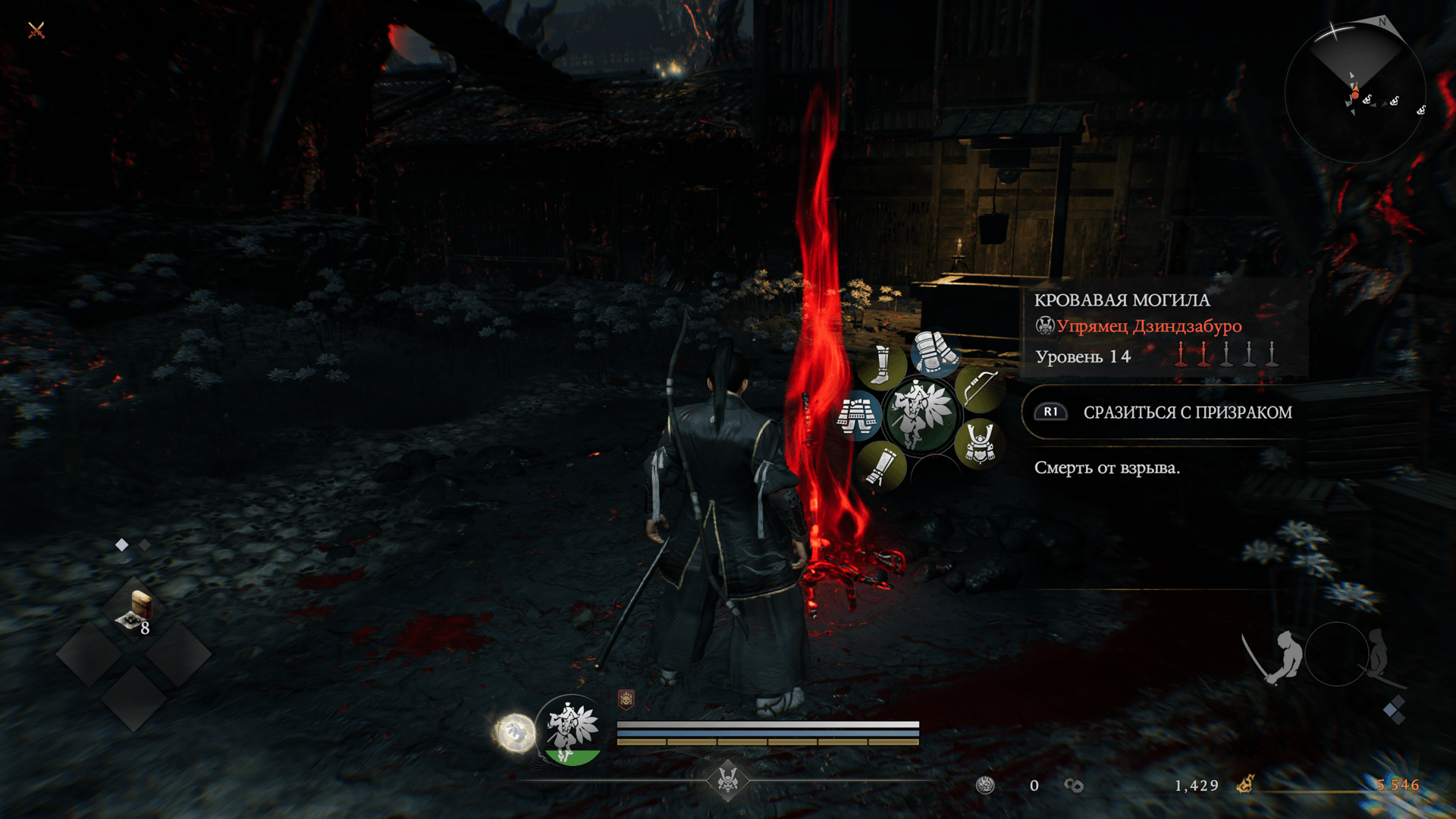 Это могилы других игроков, с помощью которых можно призывать Призраков (других игроков, превратившихся в ёкай) и сражаться с ними. Призраки сильны, но при победе над ними можно получить чашечки отёко и экипировку. Кроме того, на кровавых могилах указана причина гибели игроков, что может оказаться полезным.