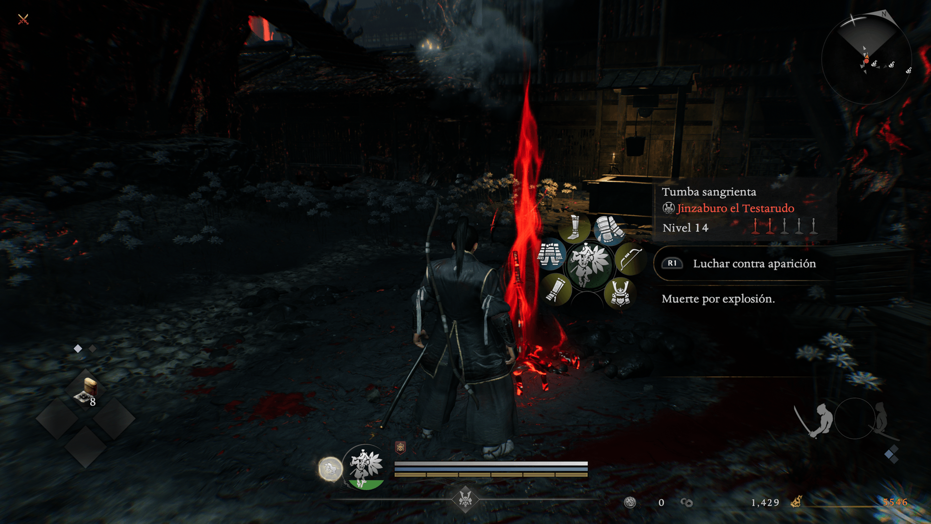 Estas son las tumbas de otros jugadores y puedes usarlas para invocar apariciones (otros jugadores que se han convertido en yokai) y luchar contra ellas. Las apariciones son fuertes, y al derrotarlas, puedes obtener copas ochoko y equipo. Además, en las tumbas sangrientas queda registrada la causa de la muerte de su propietario, lo que puede darte pistas para tu misión.