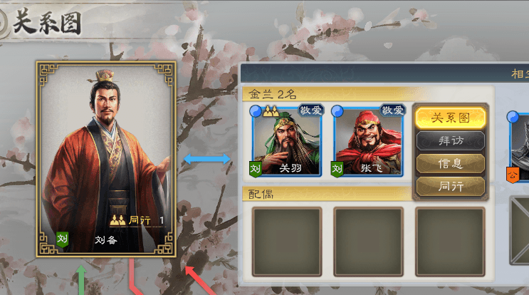 在关系图中可以确认与主角关系匪浅的武将。