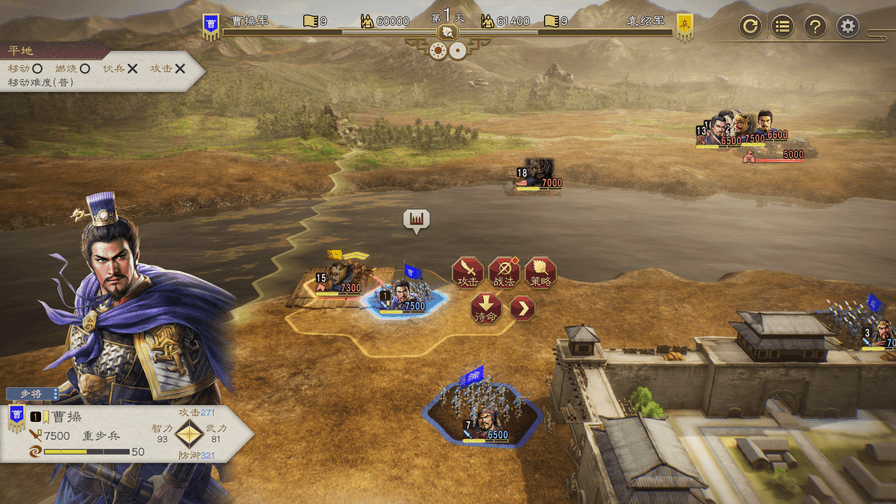 | 攻击 | 向敌方部队或建筑进行普通攻击,射程依据兵种发生改变。 若战意高涨,有可能与身边的武将合作发动强力攻击。可与亲密度在信赖以上或相生的武将合作。 若敌方部队的士兵数量归零,则会败退。 建筑的耐久归零后将被破坏。 |