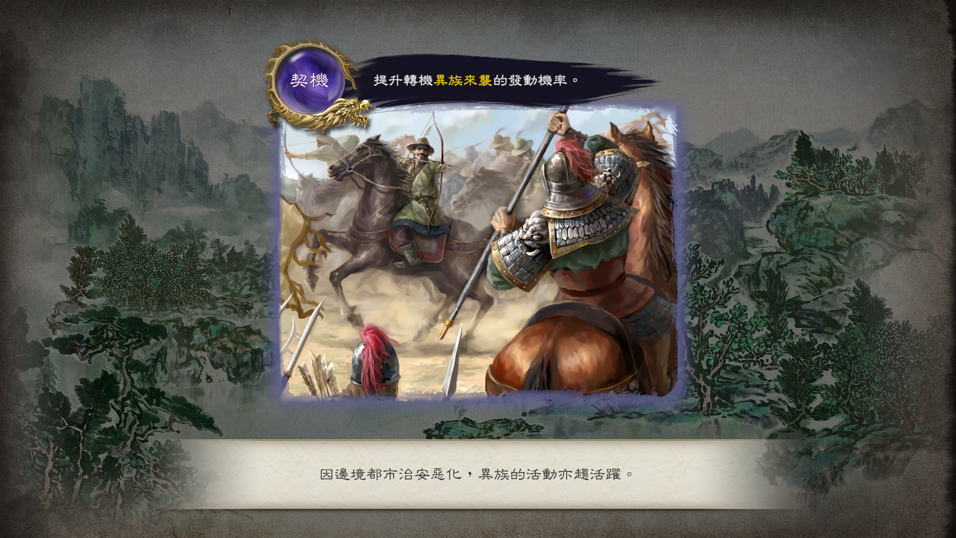 | 瘟疫 | 瘟疫較易在遭洪水侵襲的都市發生,季節更迭時也可能會擴散至鄰接都市。一定會在1月結束。 發生時都市的士兵會減少,所屬武將的傷病可能會惡化。 |