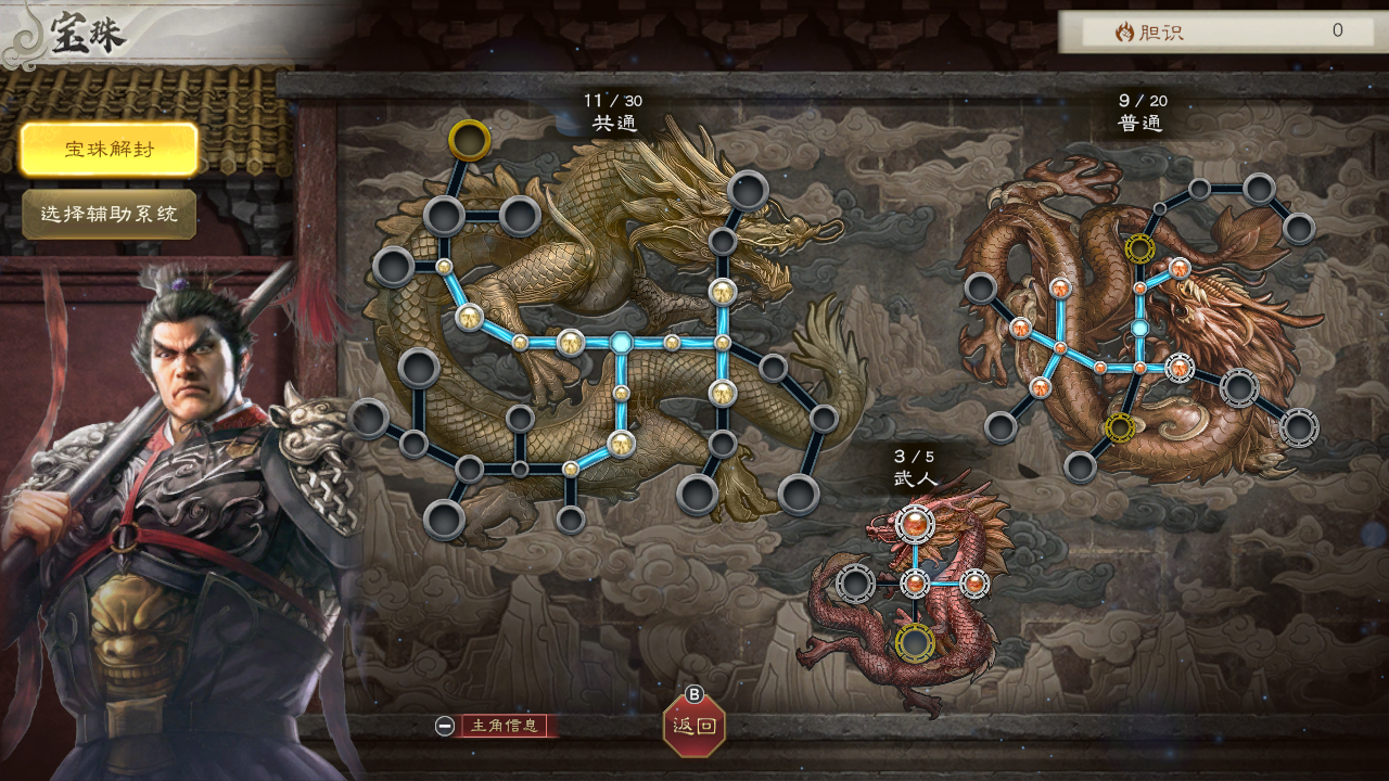 每顆寶珠都設定有必需的膽識與解鎖兩個條件。符合條件時可消費膽識,解鎖寶珠。
