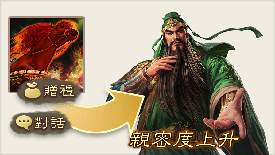 此外,每當敬愛武將的敬愛量表全滿時,便可請親密度為敬愛的武將傳授祕訣,傳授的祕訣因武將而異。