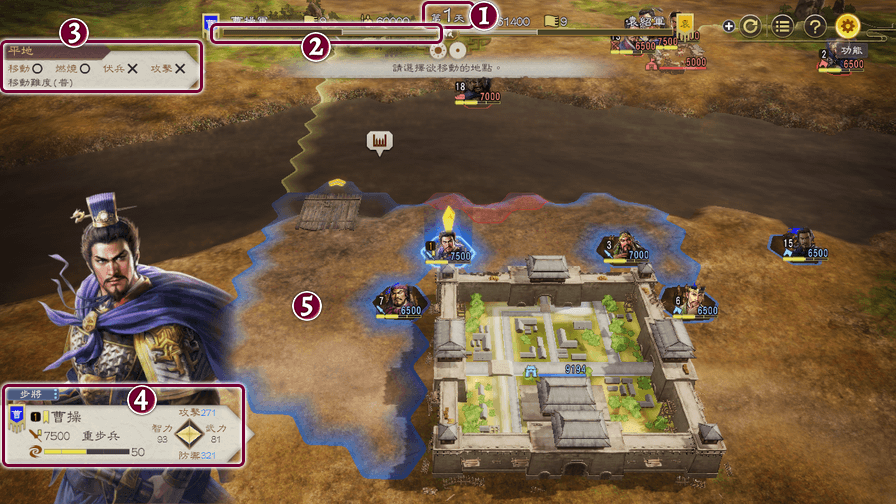 若主角的身分是君主、都督或太守,則可以操作出陣都市的部隊。