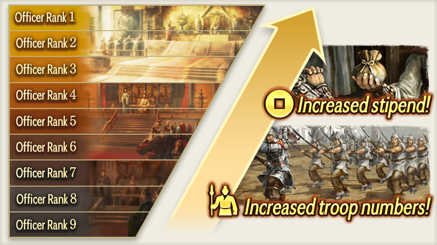 They also have ranks from 1 to 9, with Rank 1 being the highest. The higher their rank, the larger their stipend and the number of troops they can lead.