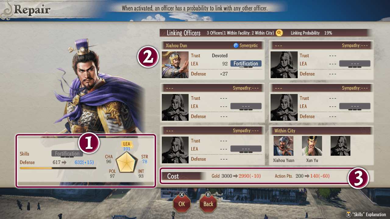 Additionally, if a link is formed with an officer whom you have a Synergetic relationship with, they can assist and boost the effects of the action you are performing.