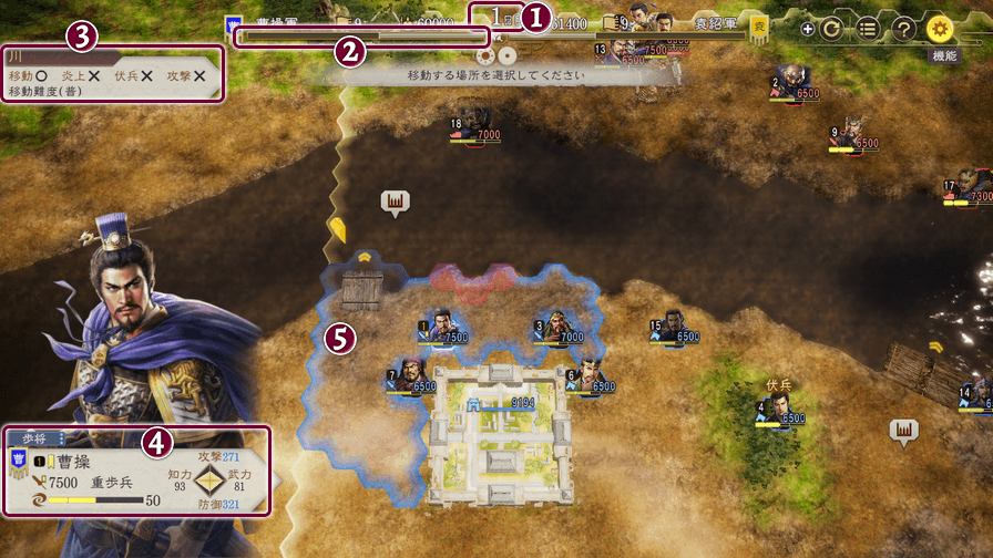 | 一般、軍師 | 総大将の場合は正規軍を操作できます。 総大将以外の場合は主人公の部隊のみを操作できます。 また、特権を使用して正規軍全部隊を操作することもできます。 |