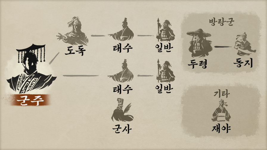 휘하로 도독, 군사, 태수, 일반 신분이 있습니다.