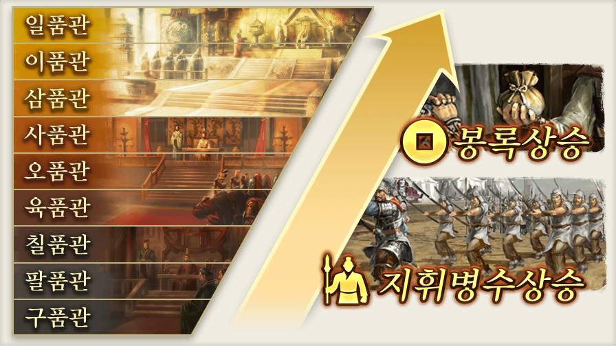 또한, 일품관부터 구품관까지의 「계급」이 있습니다. 계급이 높을수록 봉록과 편제 가능한 병사가 늘어나기도 합니다.