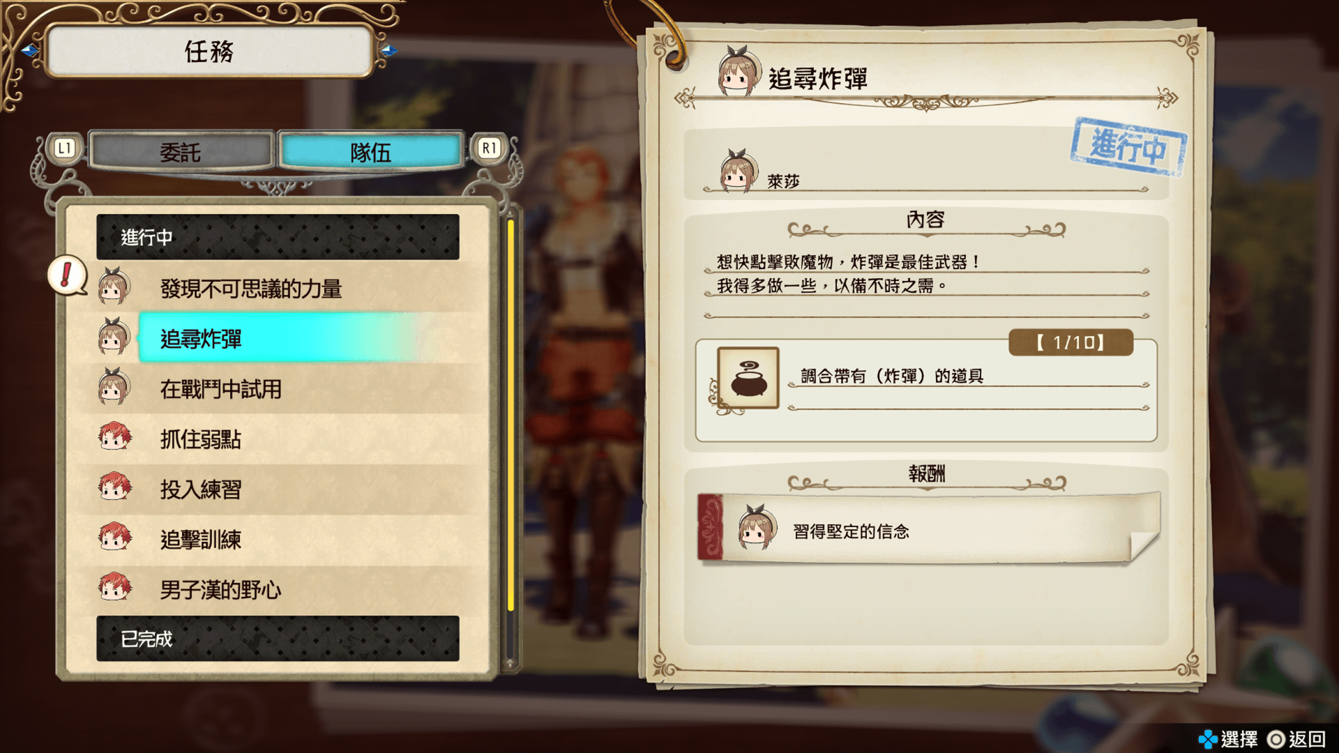 滿足隊伍任務的條件之後,可以從「主選單>任務>隊伍」來達成任務。 有符號的隊伍任務是有辦法達成的。