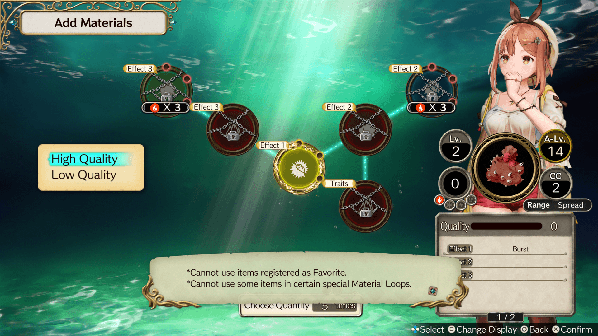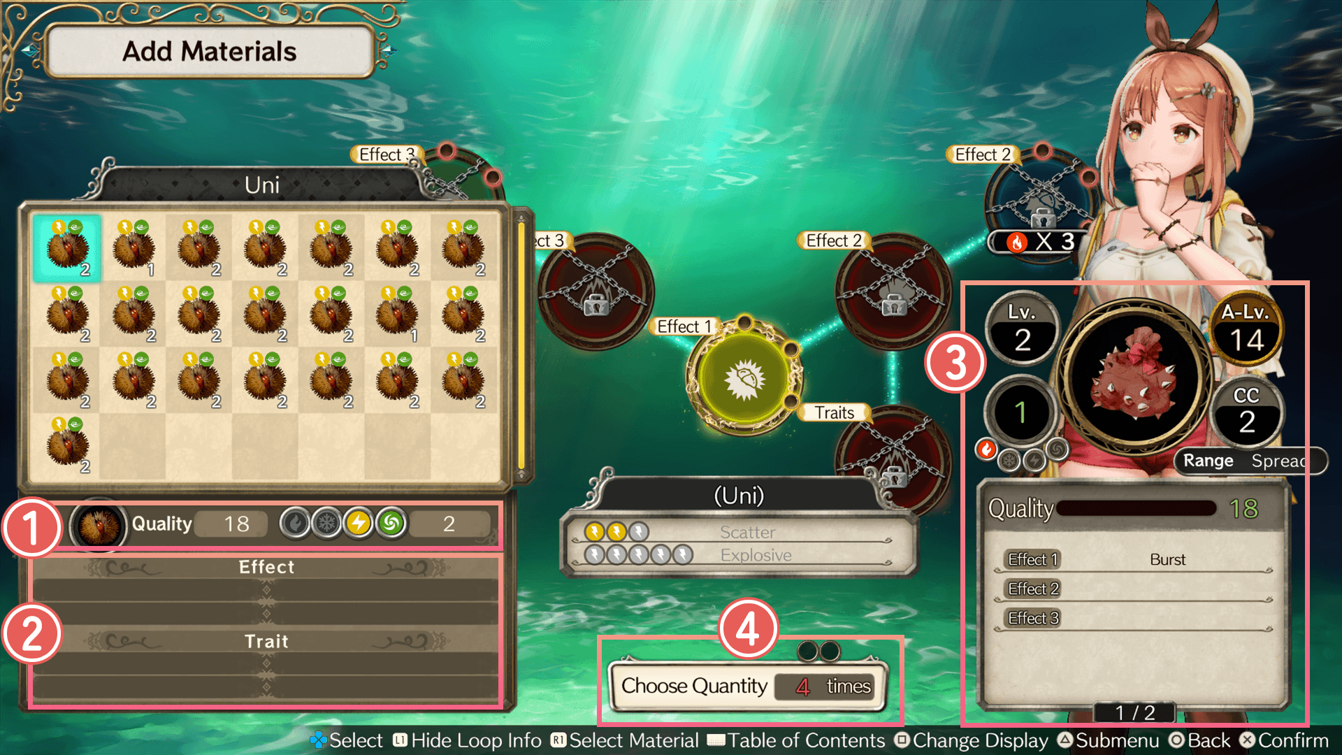 As your Alchemy Level increases, you'll be able to add more materials to each synthesis.