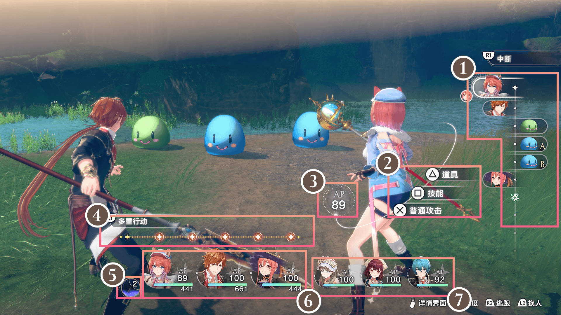 在选择战斗指令时按下以下按键,可查看敌我双方的信息。