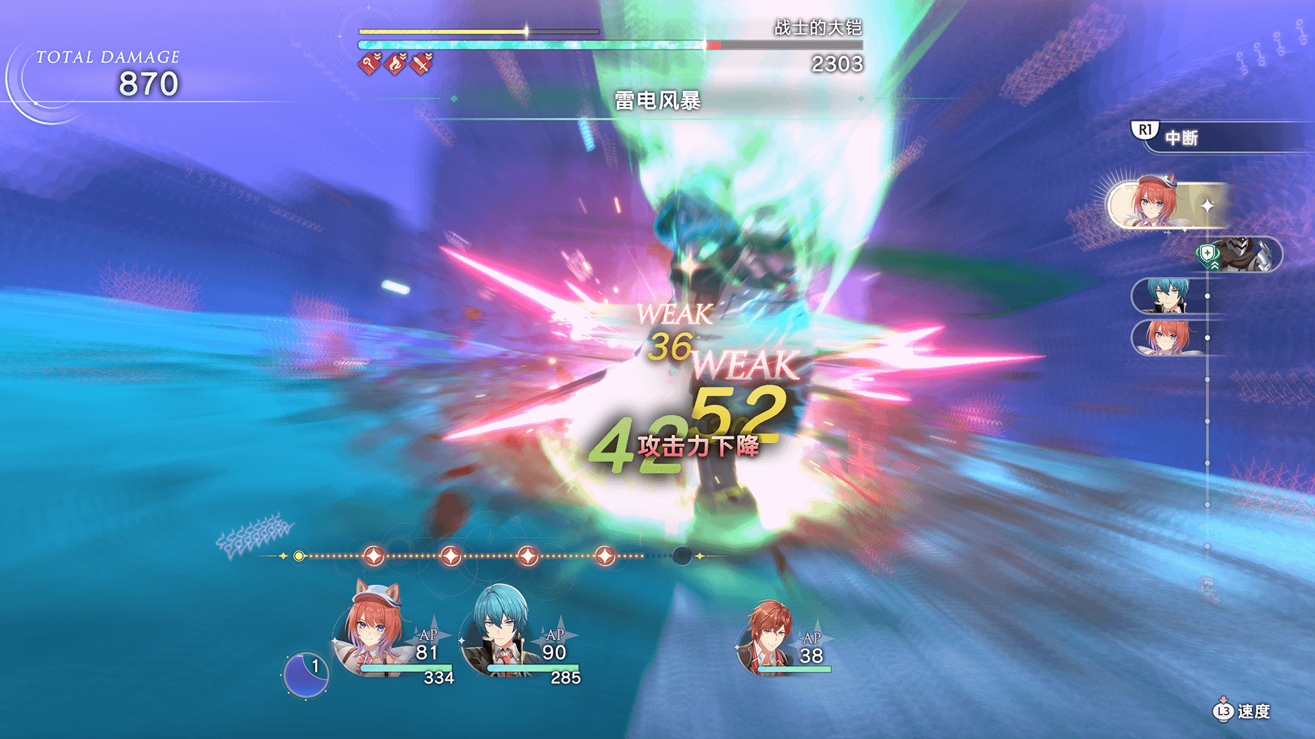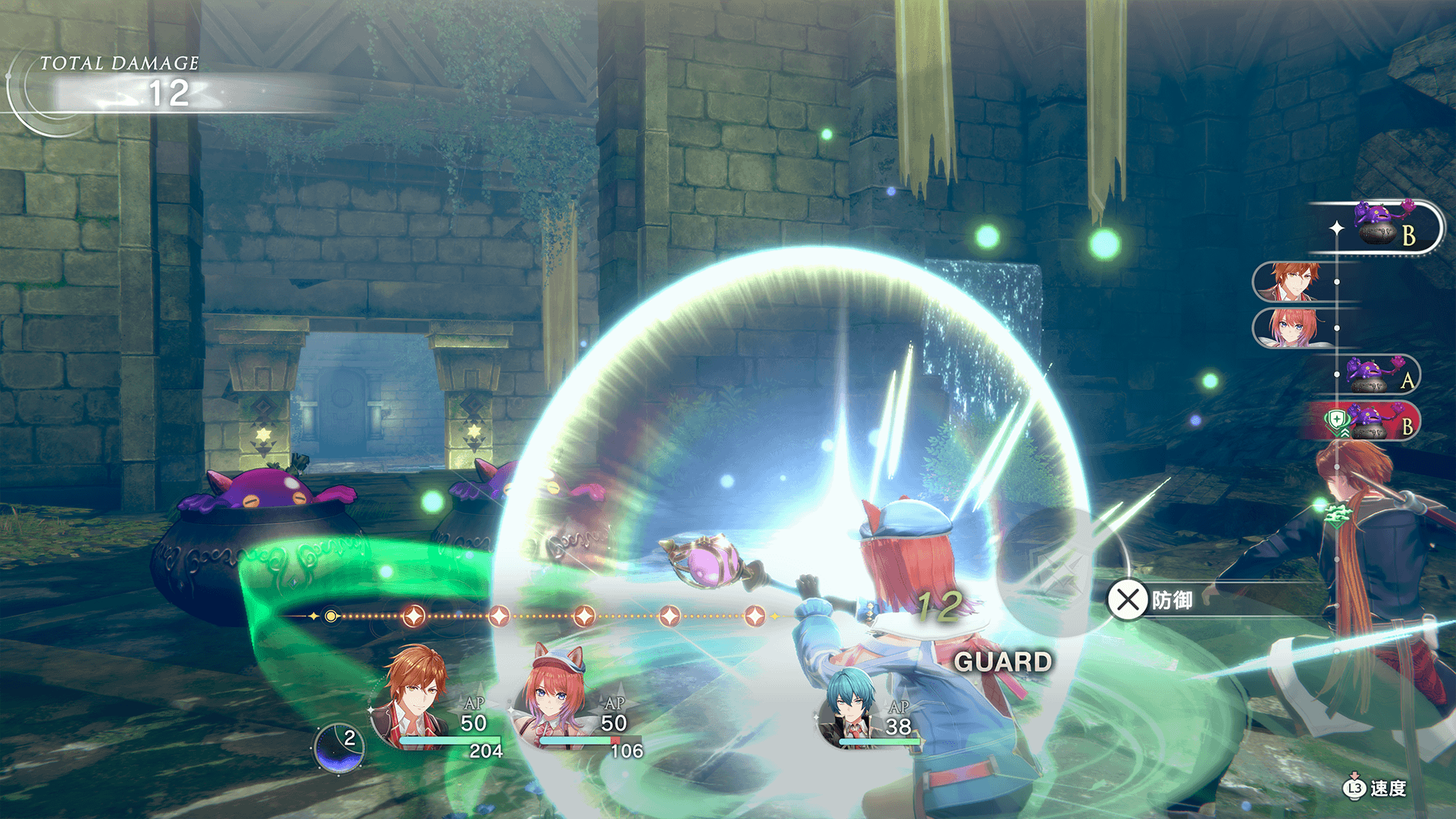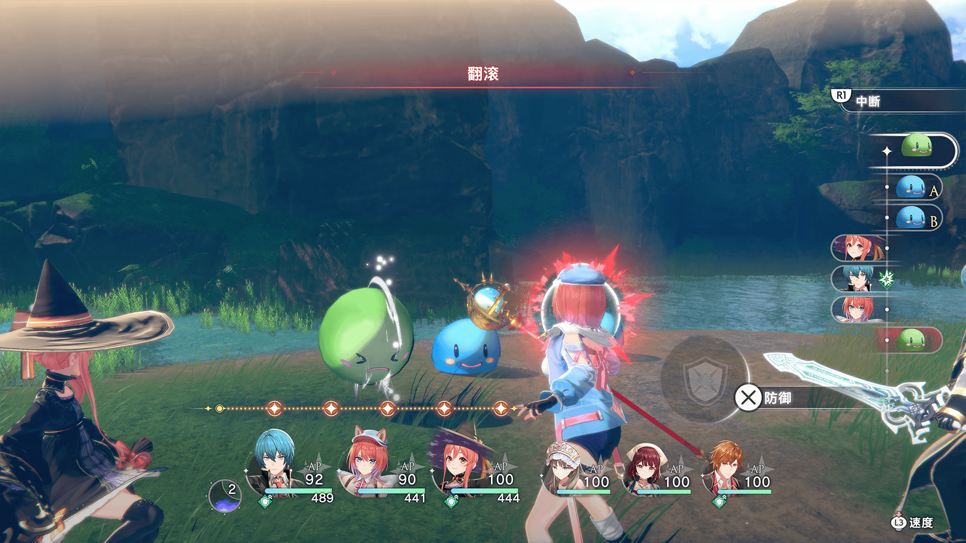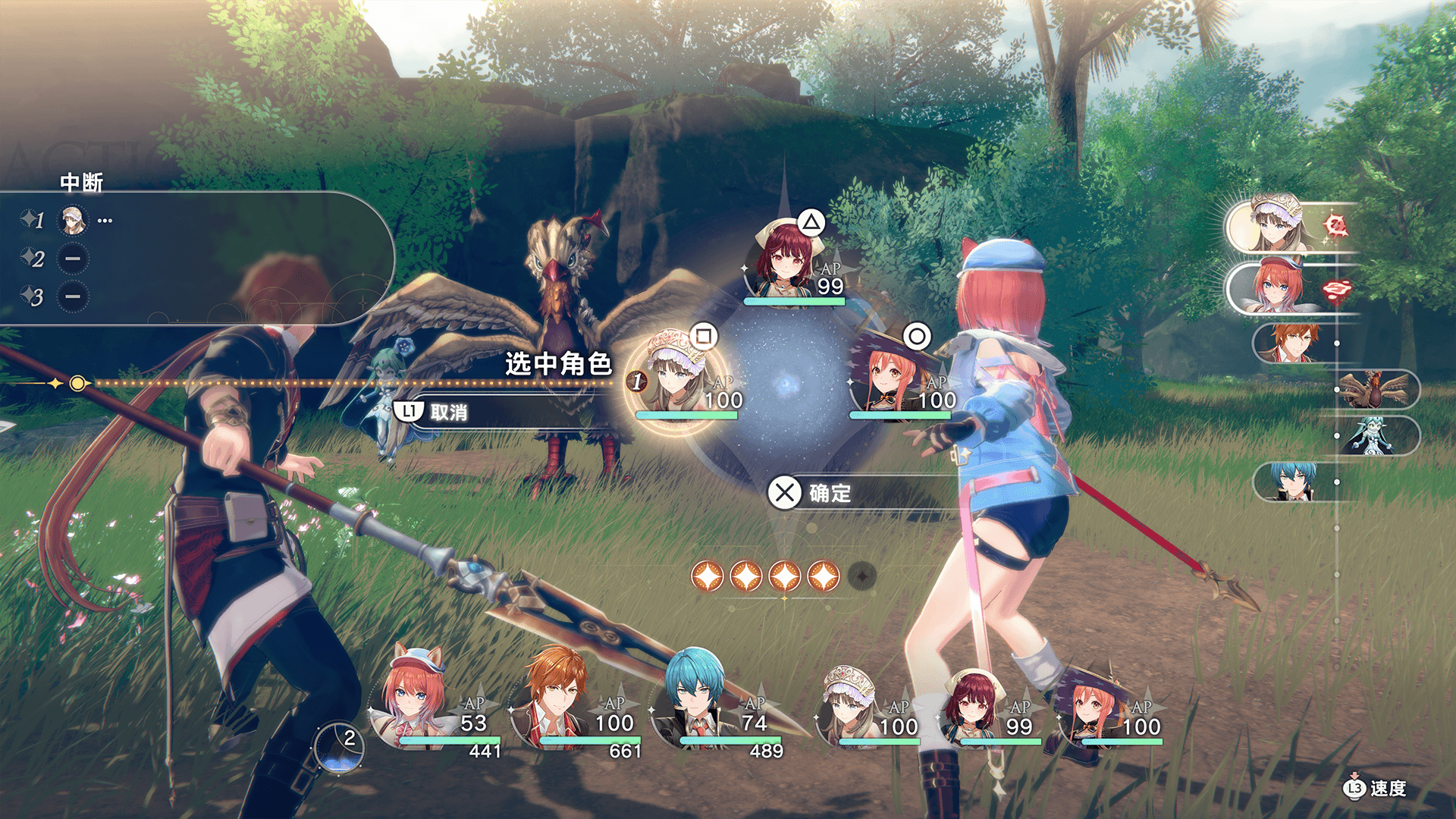 消耗TP,即可在按下按键后抢先插入后卫成员的行动回合。