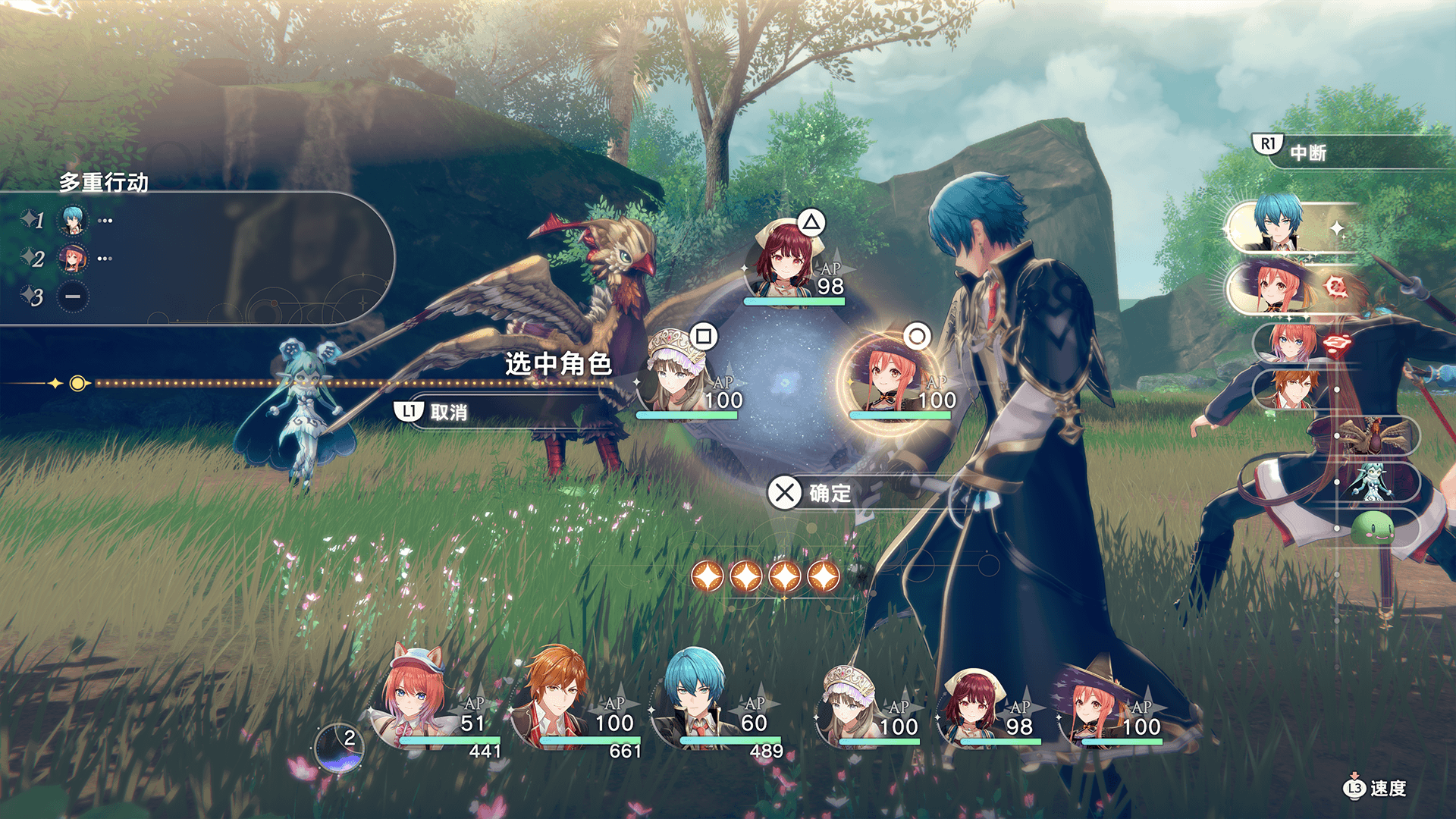 展开多重行动后,可替换已行动的前卫成员与后卫的成员配置。