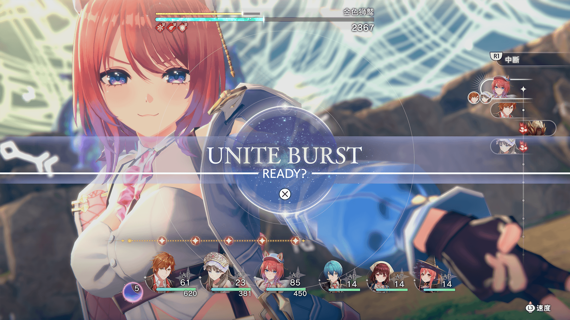 当合作槽达到5时,在选择战斗指令时按下以下按键即可发动合作爆发。