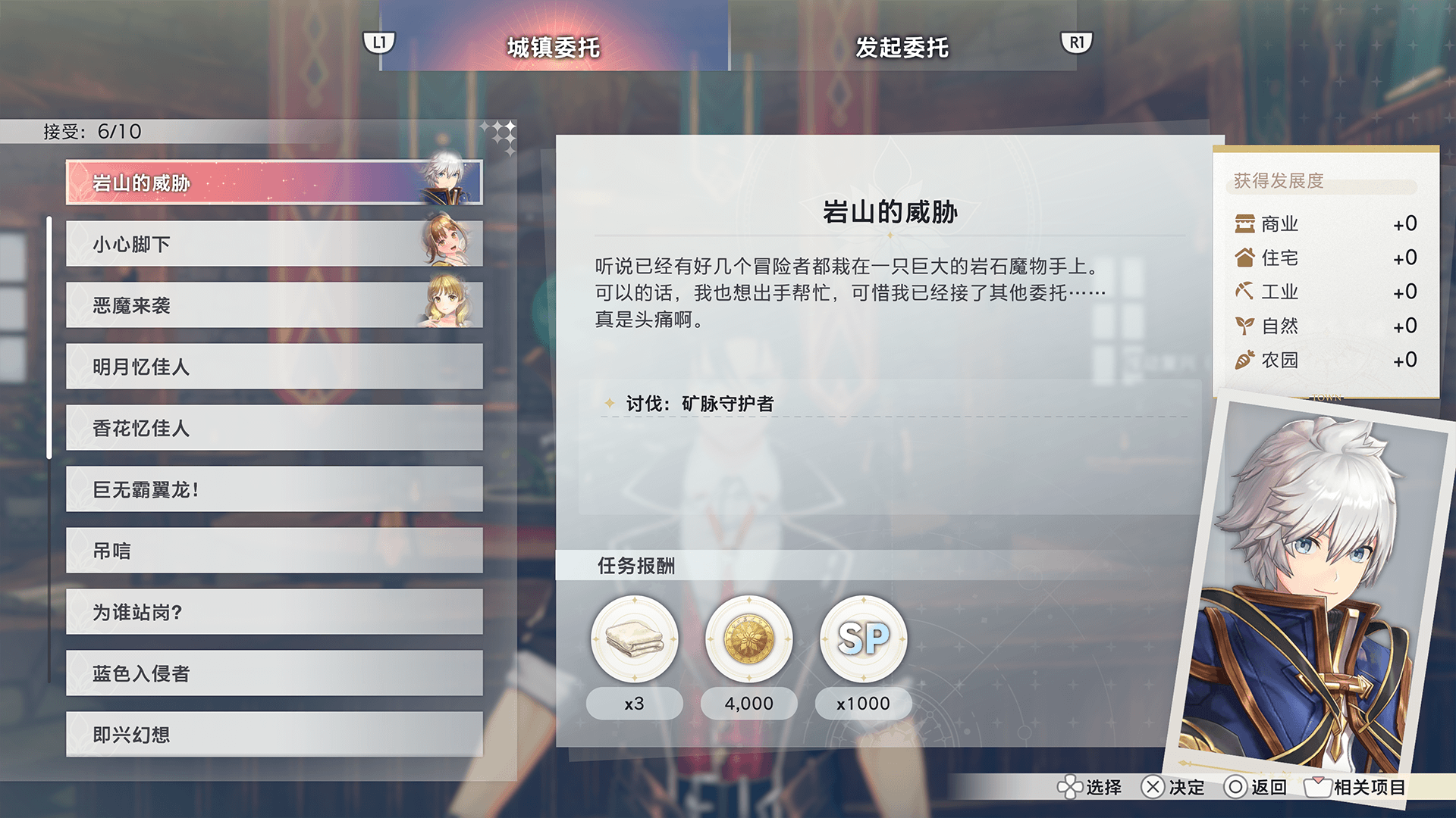 与兰道夫交谈后,可以承接镇民们的委托。完成委托并完成报告后,不仅可获得金钱和道具,还能促进城镇复兴。