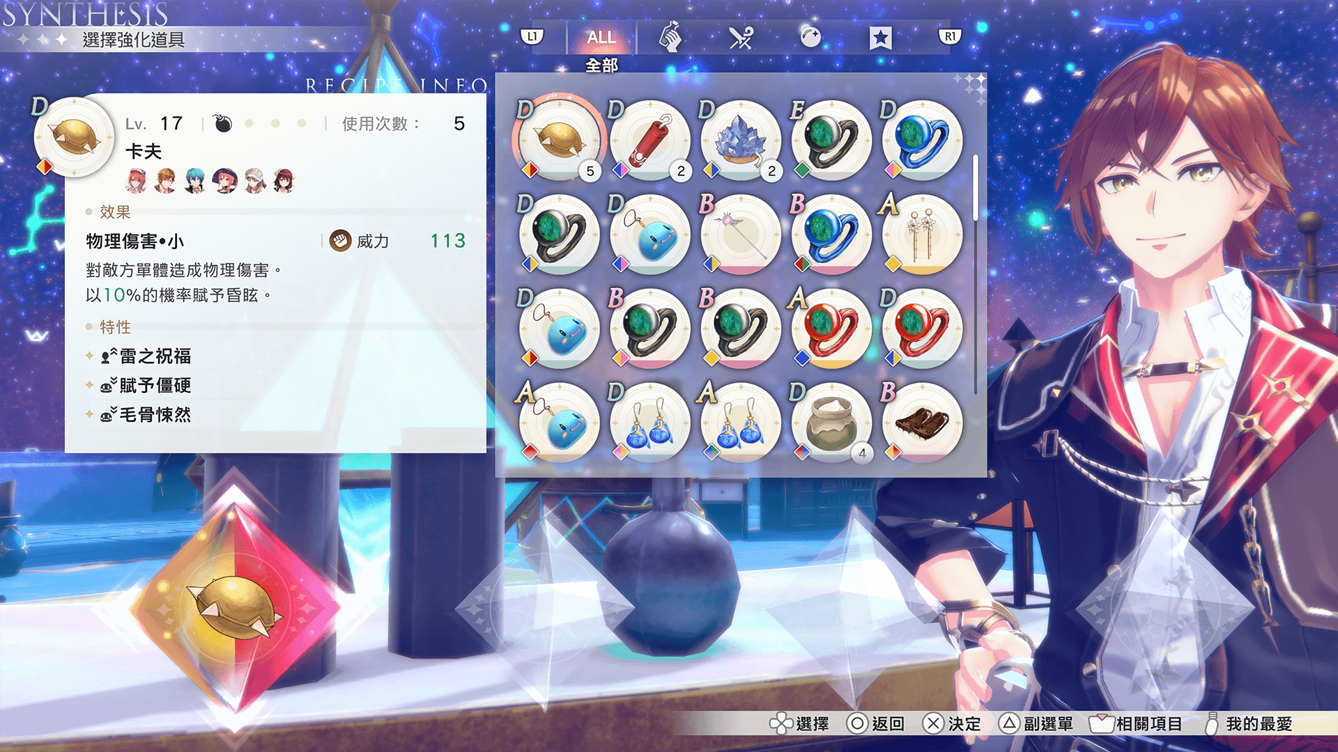 依據所選的種類,可獲得強化所需的金錢減少、強化道具的狀態上升等效果。