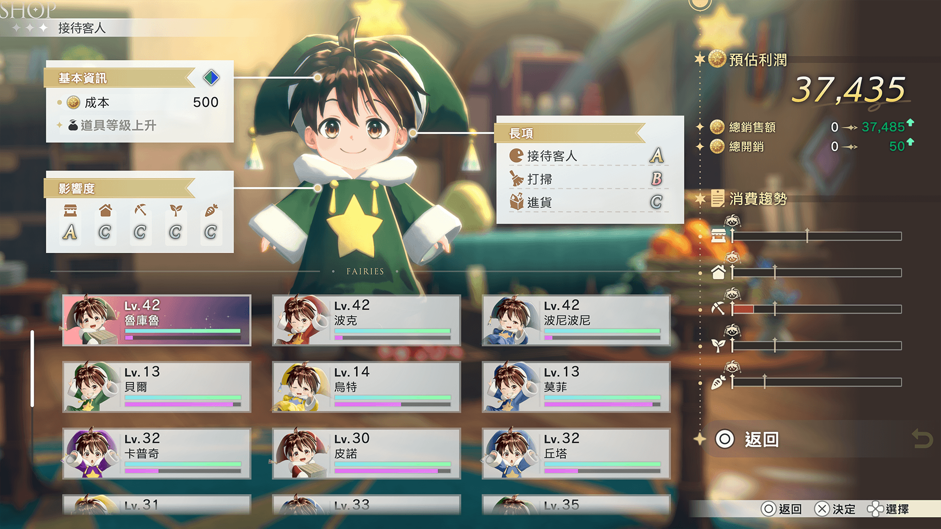 配置的妖精在販賣後精力會減少。精力不足時恐無法協助工作。
