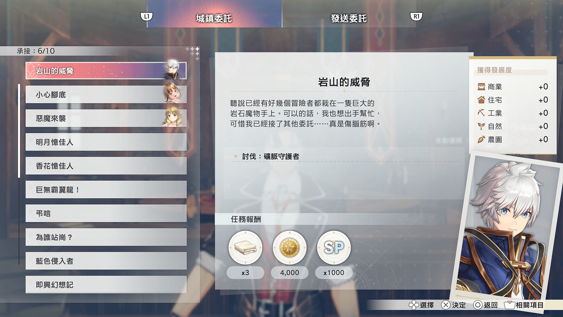 與蘭道夫交談後可承接鎮民們的委託。完成委託並報告後,除了可獲得金錢及道具,還可推動城鎮的復興。