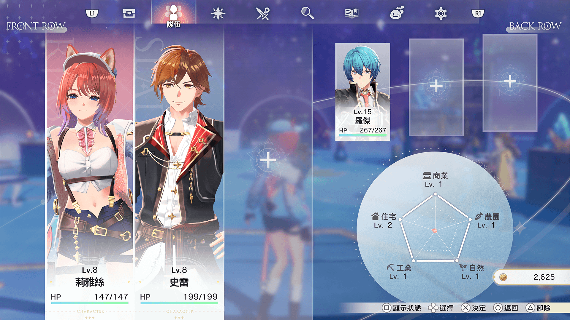 在主選單可變更裝備、隊伍編成,或查看隊伍角色的狀態等。