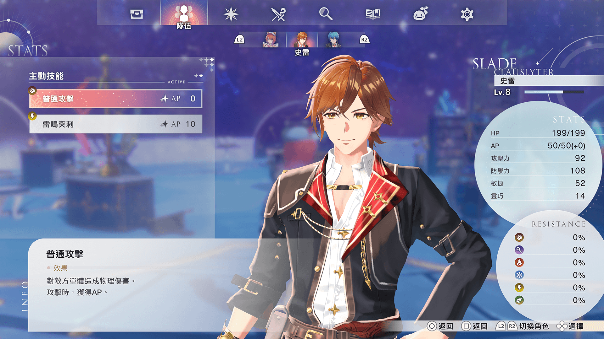 因裝備道具等效果,將對各種屬性附加耐性。