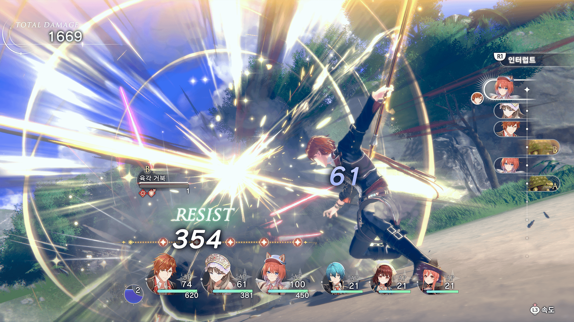 TP를 사용하여 누른 직후의 행동순서에 후열 멤버가 끼어들어 행동할 수 있게 합니다.