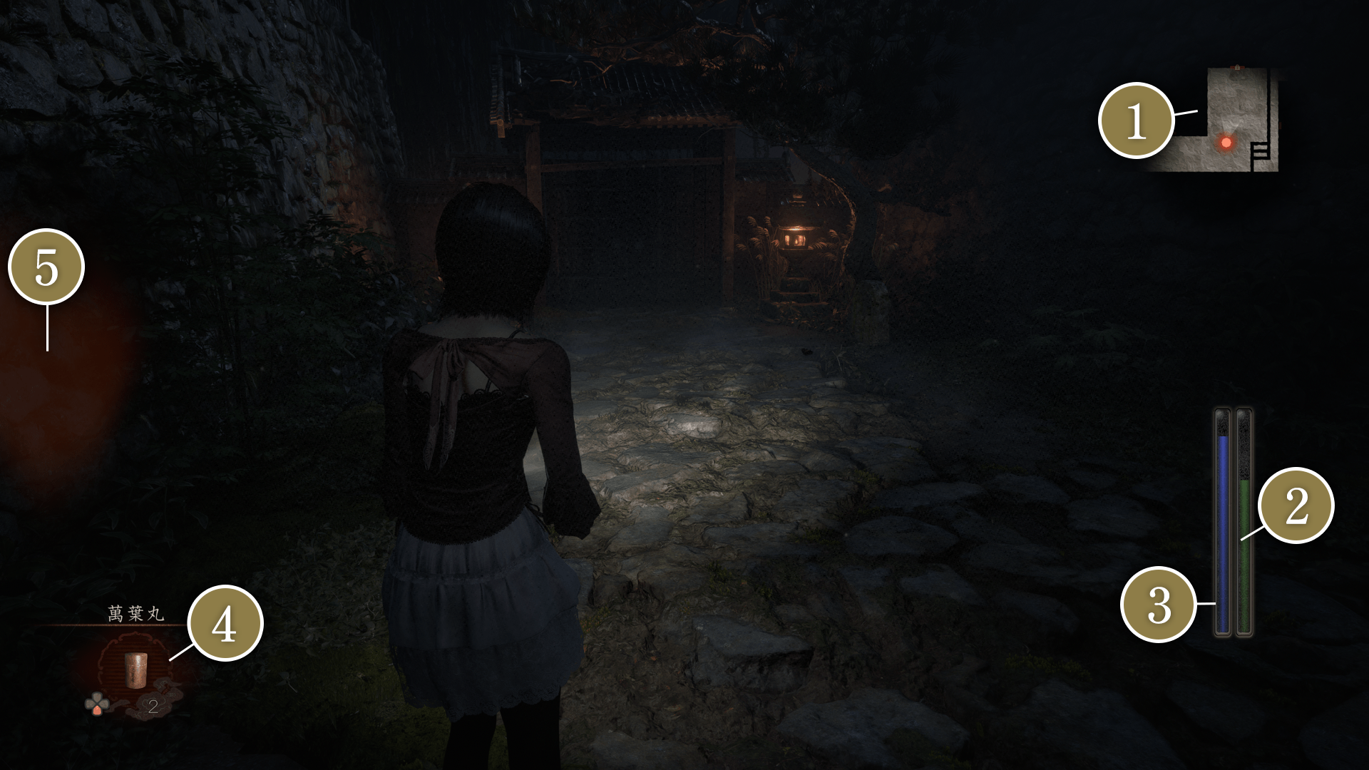用於使用濾鏡的特殊拍攝。在怨靈出現期間奔跑,或是被怨靈抓住都會減少靈力。與繭牽手時會自動回復靈力。