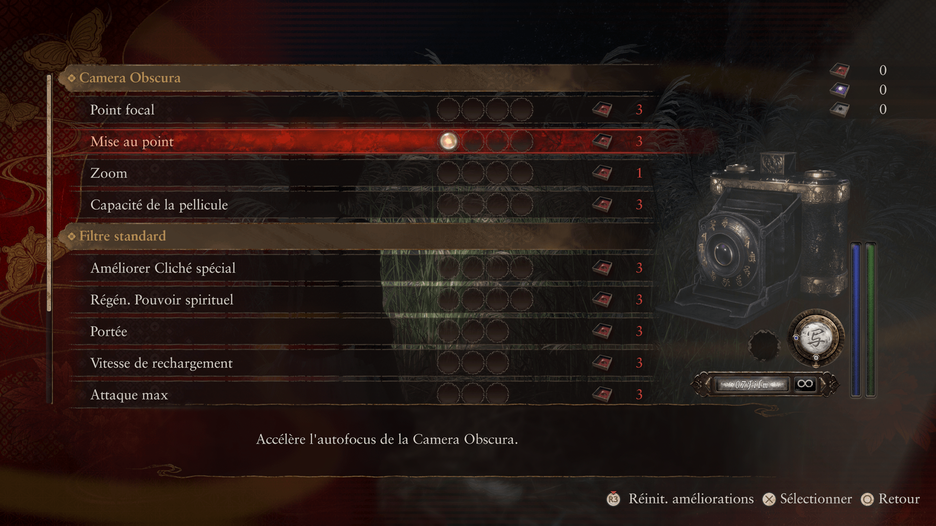 | Améliorations conseillées au début du jeu (Camera Obscura) | |
