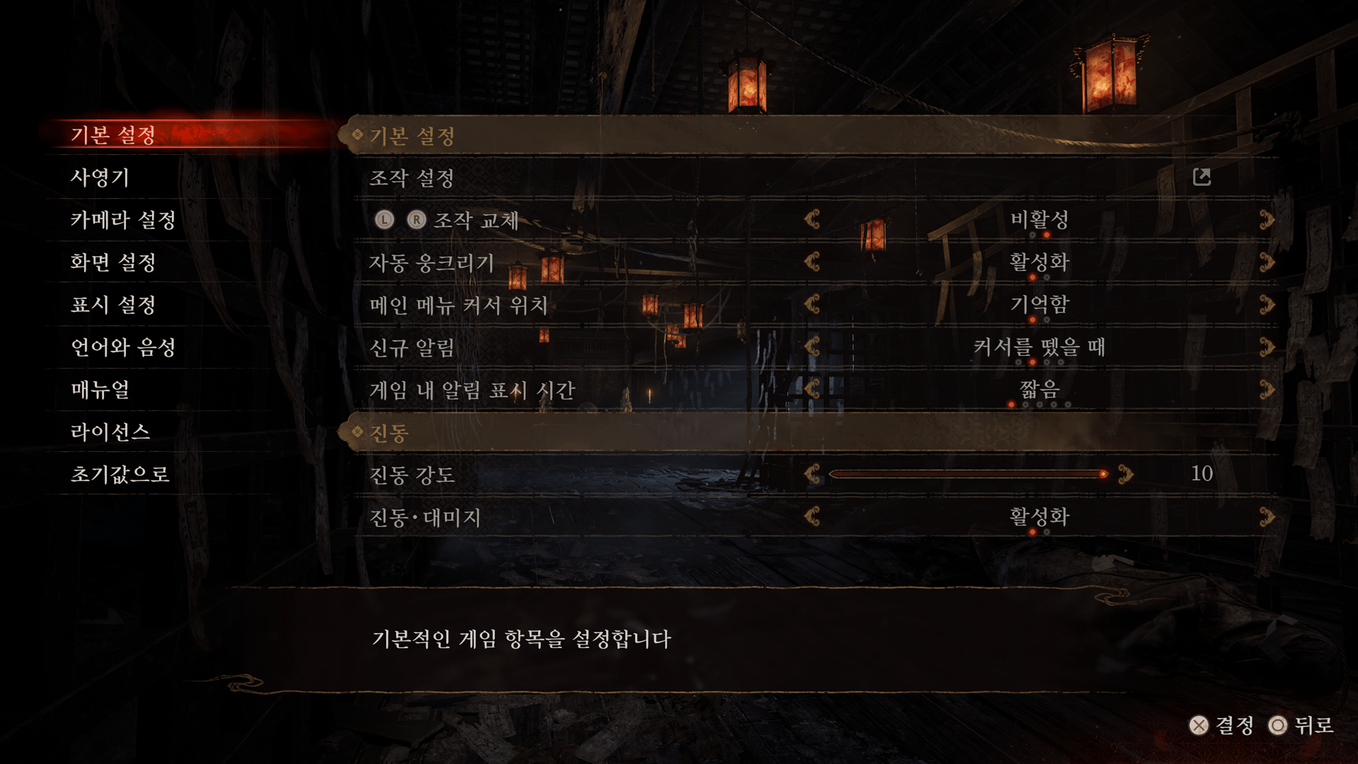 조작 모드 전환, 사영기 홀드/토글 전환, 자막, 조작 가이드, 진동, 자이로 센서 기능※의 ON/OFF도 설정할 수 있습니다.