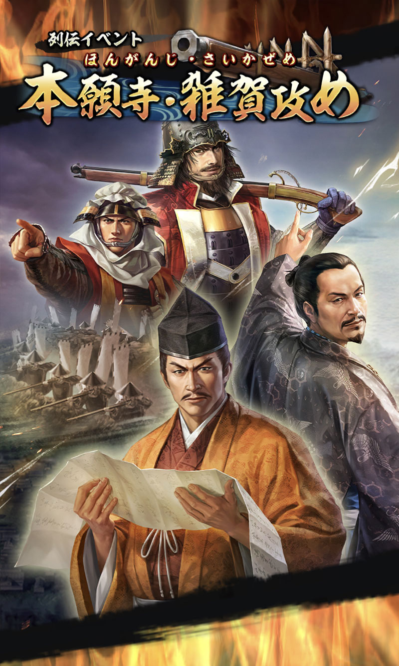 全国のプレイヤーや登録した友人と一緒に、戦国時代に名だたる名将を討伐するイベントです。