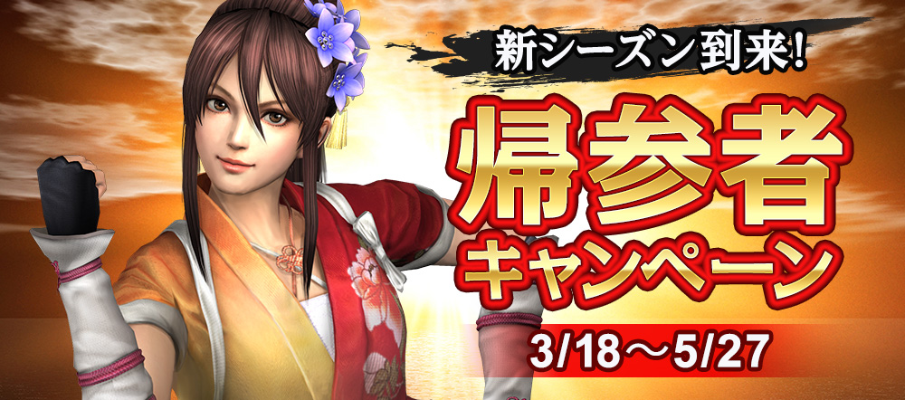 | 特典2 | 帰参者全員に「英傑」「家臣」のアイテムをプレゼント! |