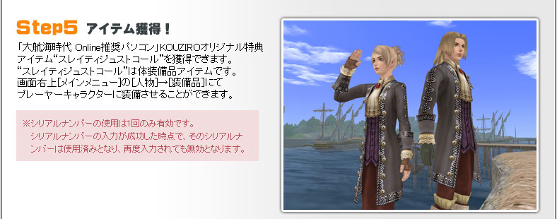 「大航海時代Online 推奨パソコン」オリジナルアイテムが手に入ります。