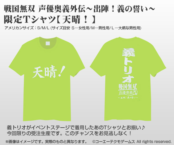 - [期間限定販売] 戦国無双 声優奥義 外伝〜出陣!義の誓い〜 限定Tシャツ【天晴!】 全3種 アメリカンサイズ:S/M/L