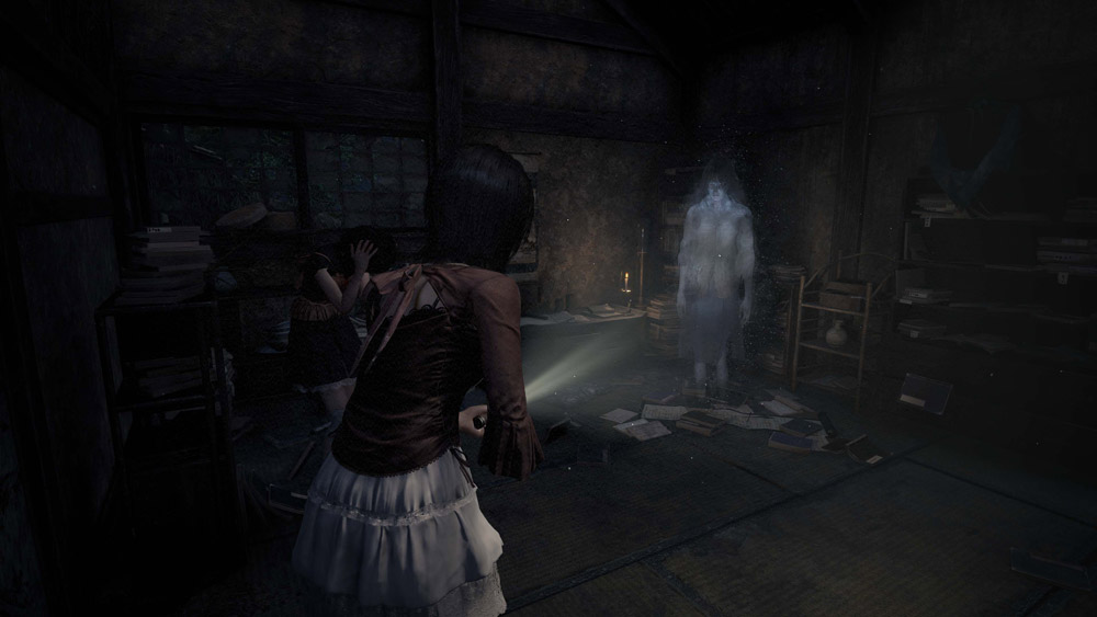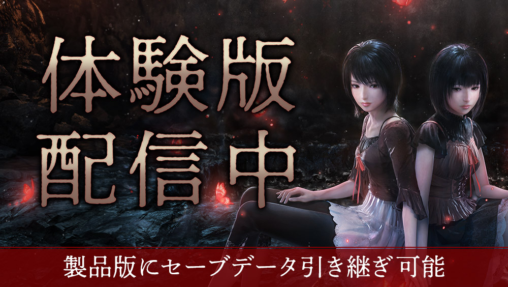 紅い蝶に誘われるように皆神村へ迷い込んだ澪と繭が、古びた廃屋で怨霊と遭遇し、戦闘を繰り広げるシーンをお楽しみいただけます。本作で進化したグラフィックやサウンド、繭と手を繋ぐ新機能のほか、新しくなった射影機での戦闘をぜひ体験版でお楽しみください。