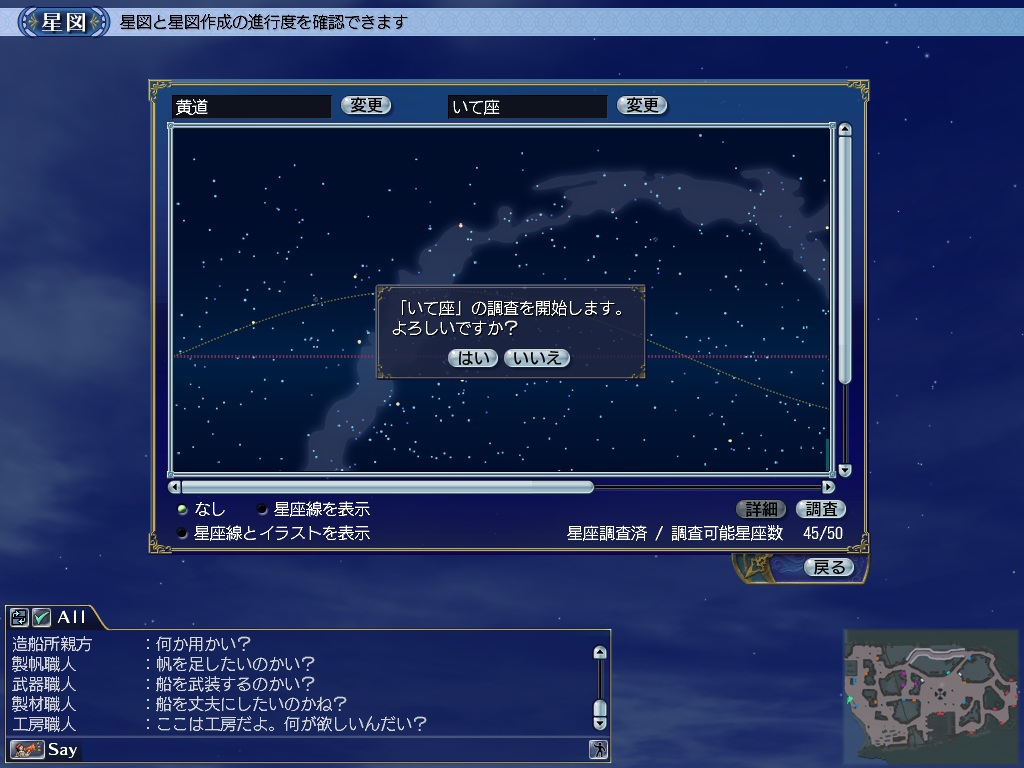 さまざまな行動を通じて星座の情報を集め、全天星図の完成を目指しましょう。
