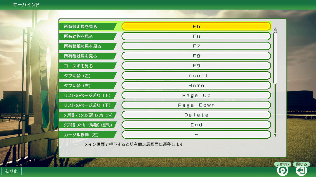 | 【F5】 | 所有競走馬を見る(メイン画面) |